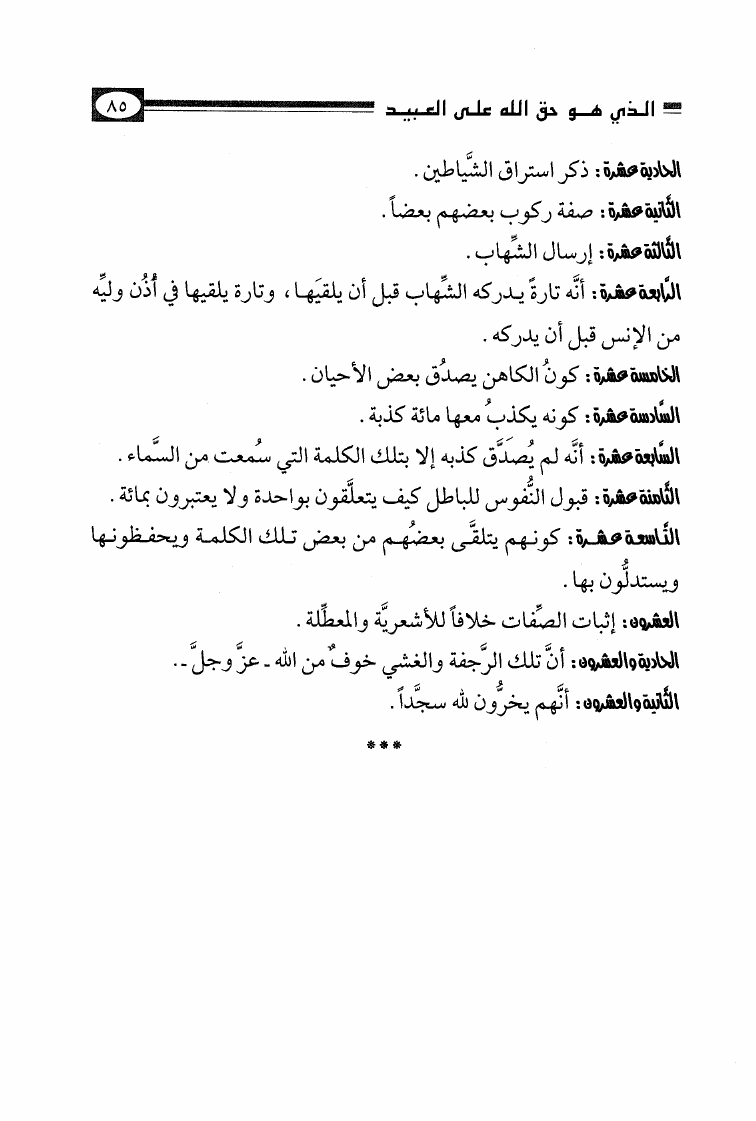 نام کتاب : الأصول الثلاثة وشروط الصلاة والقواعد الأربع وكتاب التوحيد وكشف الشبهات والواجبات المتحتمات والأربعون النووية نویسنده : محمد بن عبد الوهاب جلد : 1 صفحه : 85