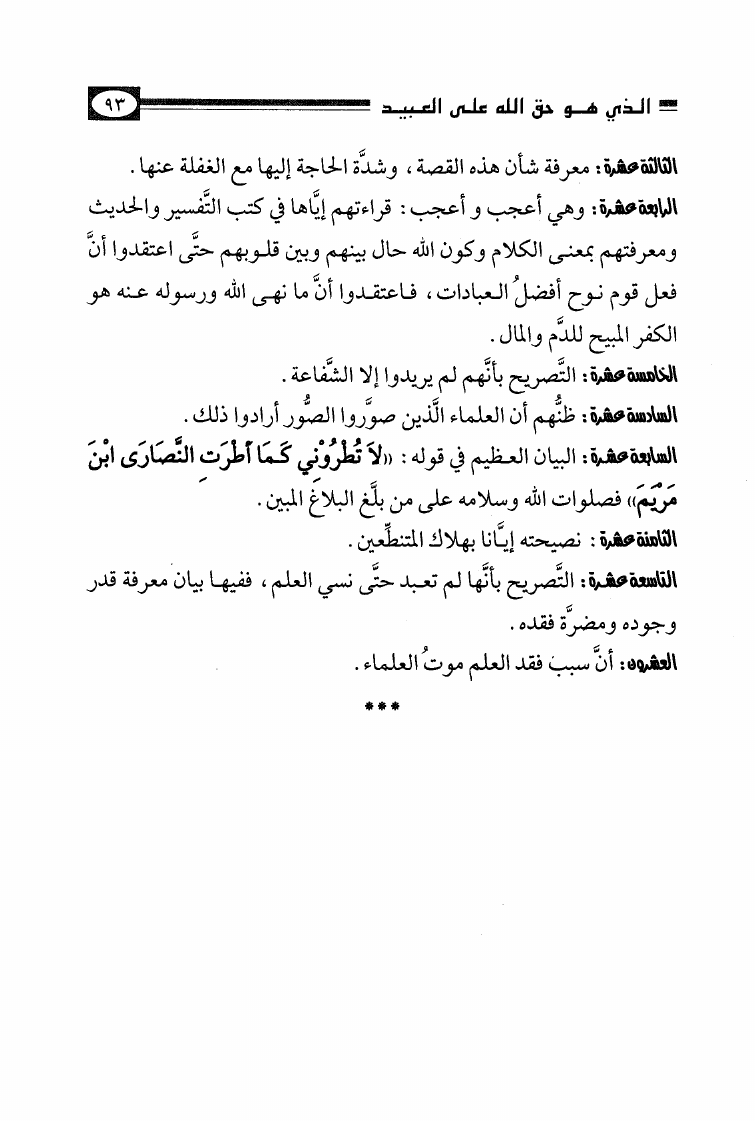 نام کتاب : الأصول الثلاثة وشروط الصلاة والقواعد الأربع وكتاب التوحيد وكشف الشبهات والواجبات المتحتمات والأربعون النووية نویسنده : محمد بن عبد الوهاب جلد : 1 صفحه : 93