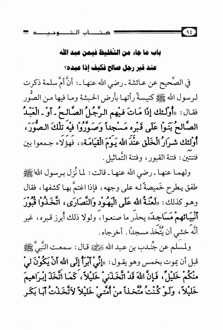 نام کتاب : الأصول الثلاثة وشروط الصلاة والقواعد الأربع وكتاب التوحيد وكشف الشبهات والواجبات المتحتمات والأربعون النووية نویسنده : محمد بن عبد الوهاب جلد : 1 صفحه : 94