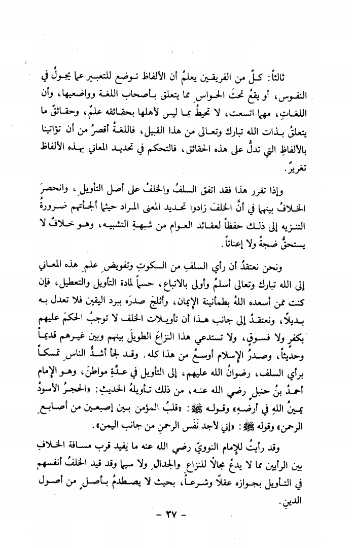 نام کتاب : الإيمان أركانه دلائله ثمراته شرح الجواهر الكلامية في العقيدة الإسلامية للشيخ طاهر الجزائري نویسنده : عبد العزيز عز الدين السيروان جلد : 1 صفحه : 37