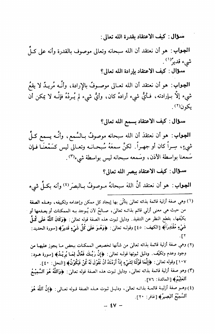 نام کتاب : الإيمان أركانه دلائله ثمراته شرح الجواهر الكلامية في العقيدة الإسلامية للشيخ طاهر الجزائري نویسنده : عبد العزيز عز الدين السيروان جلد : 1 صفحه : 47