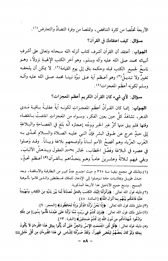 نام کتاب : الإيمان أركانه دلائله ثمراته شرح الجواهر الكلامية في العقيدة الإسلامية للشيخ طاهر الجزائري نویسنده : عبد العزيز عز الدين السيروان جلد : 1 صفحه : 58