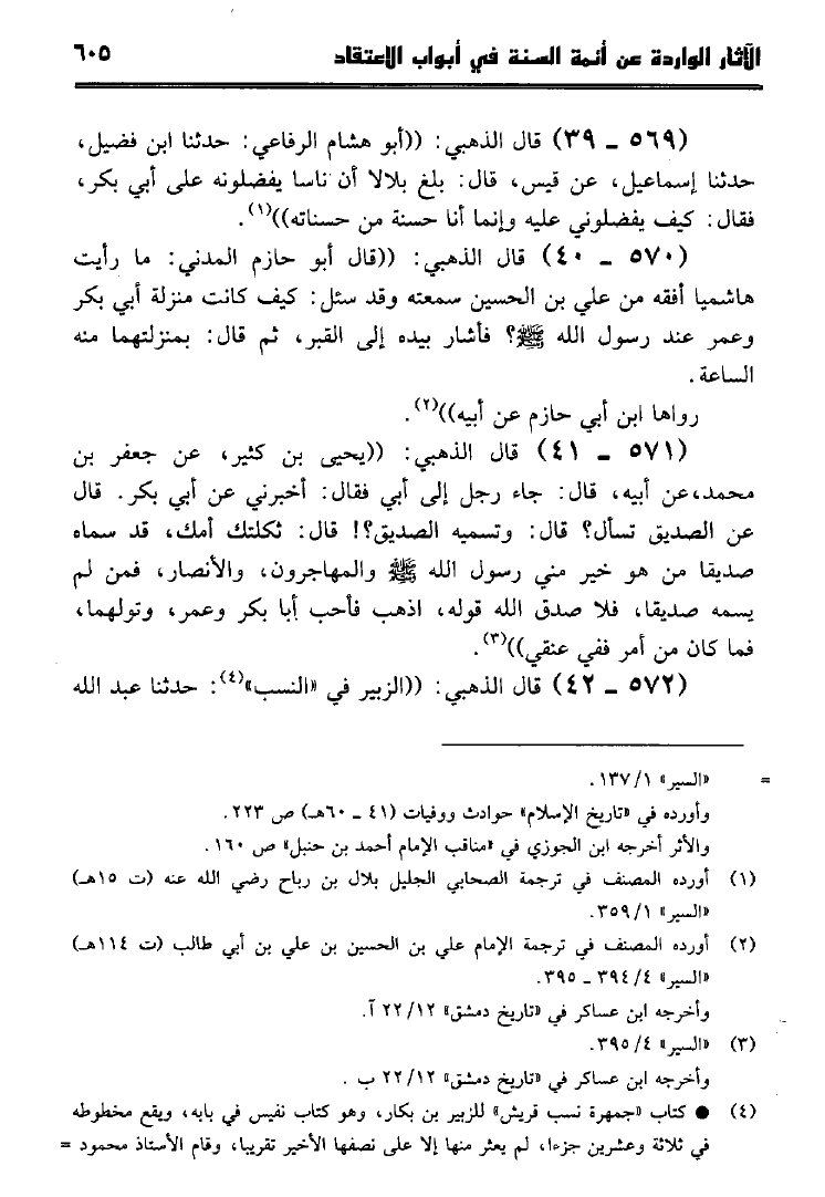 نام کتاب : الآثار الواردة عن أئمة السنة في أبواب الإعتقاد كتاب سير أعلام النبلاء للإمام الذهبي جمعاً وتخريجاً ودراسة نویسنده : جمال بن أحمد بن بشيربادي جلد : 1 صفحه : 605