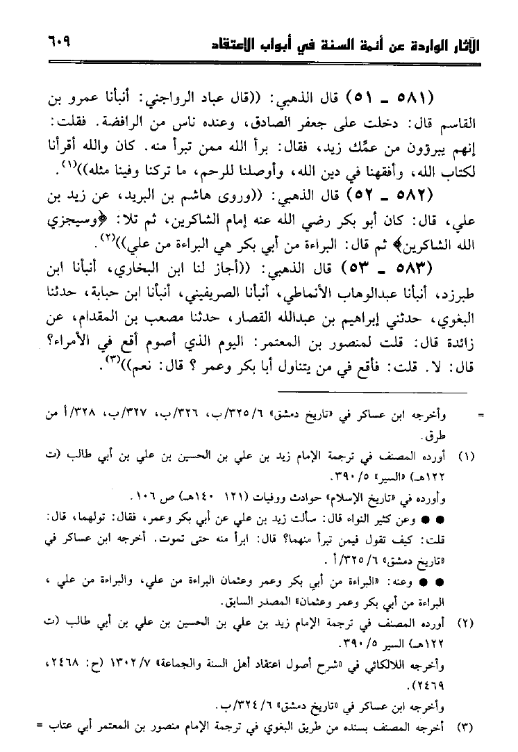 نام کتاب : الآثار الواردة عن أئمة السنة في أبواب الإعتقاد كتاب سير أعلام النبلاء للإمام الذهبي جمعاً وتخريجاً ودراسة نویسنده : جمال بن أحمد بن بشيربادي جلد : 1 صفحه : 609