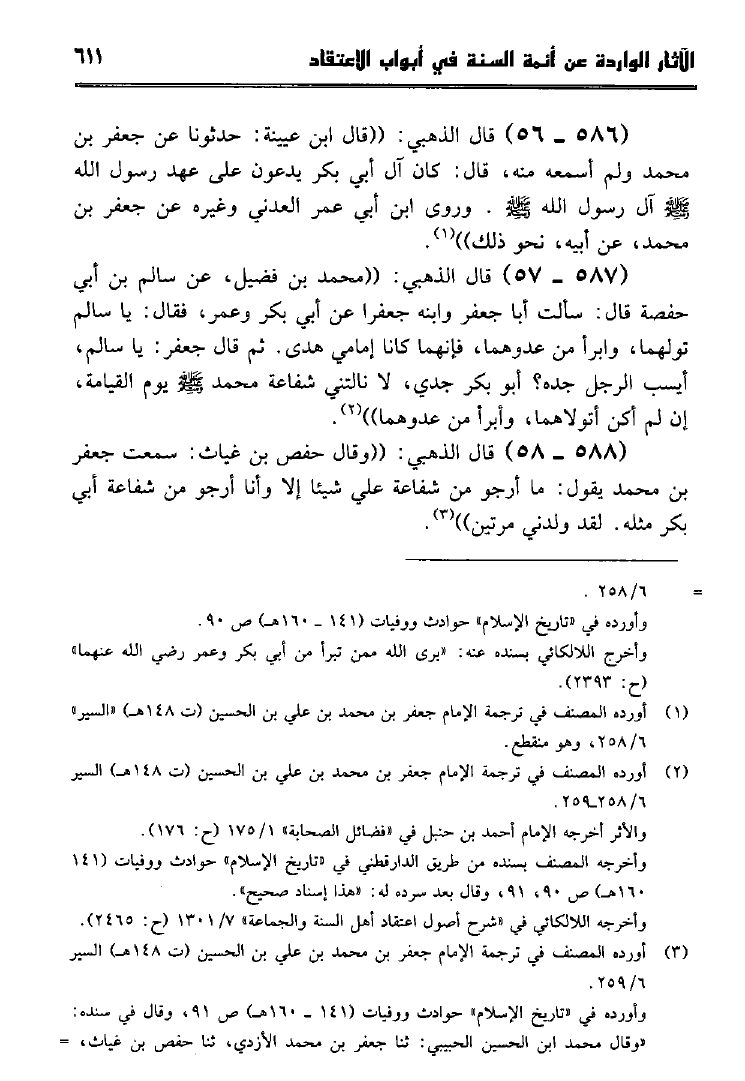نام کتاب : الآثار الواردة عن أئمة السنة في أبواب الإعتقاد كتاب سير أعلام النبلاء للإمام الذهبي جمعاً وتخريجاً ودراسة نویسنده : جمال بن أحمد بن بشيربادي جلد : 1 صفحه : 611