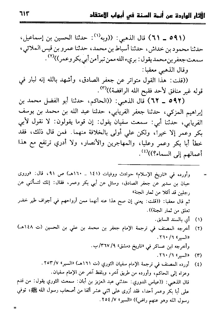 نام کتاب : الآثار الواردة عن أئمة السنة في أبواب الإعتقاد كتاب سير أعلام النبلاء للإمام الذهبي جمعاً وتخريجاً ودراسة نویسنده : جمال بن أحمد بن بشيربادي جلد : 1 صفحه : 613