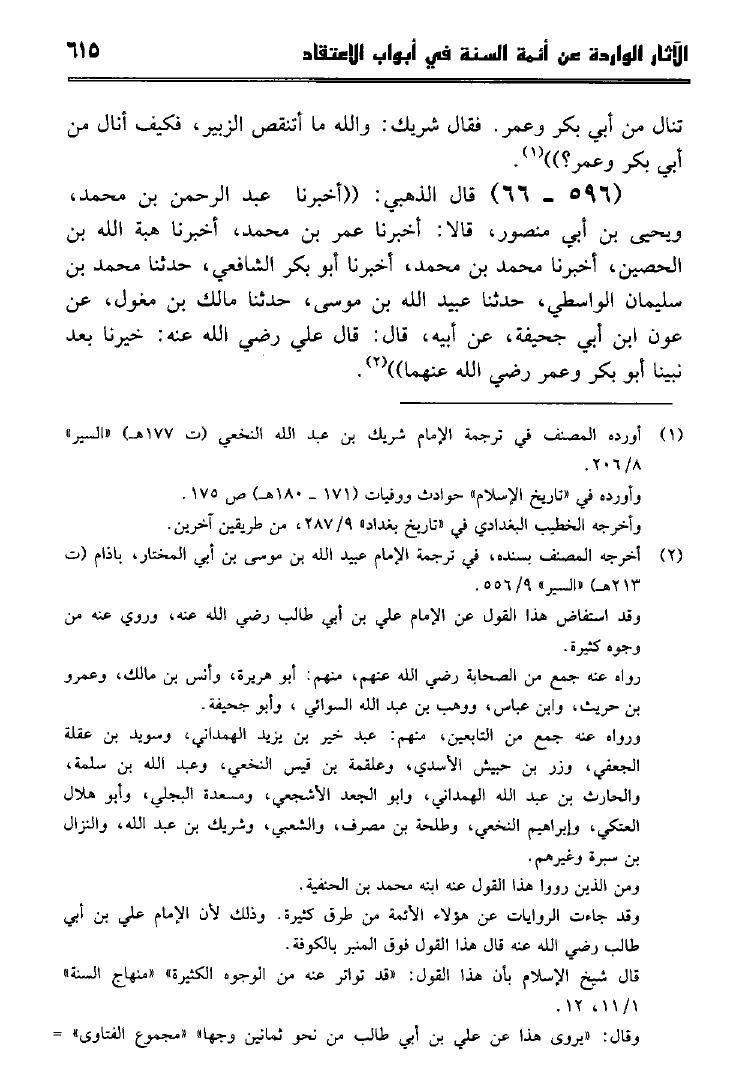 نام کتاب : الآثار الواردة عن أئمة السنة في أبواب الإعتقاد كتاب سير أعلام النبلاء للإمام الذهبي جمعاً وتخريجاً ودراسة نویسنده : جمال بن أحمد بن بشيربادي جلد : 1 صفحه : 615