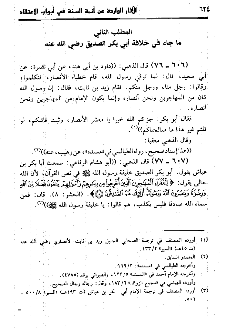 نام کتاب : الآثار الواردة عن أئمة السنة في أبواب الإعتقاد كتاب سير أعلام النبلاء للإمام الذهبي جمعاً وتخريجاً ودراسة نویسنده : جمال بن أحمد بن بشيربادي جلد : 1 صفحه : 624