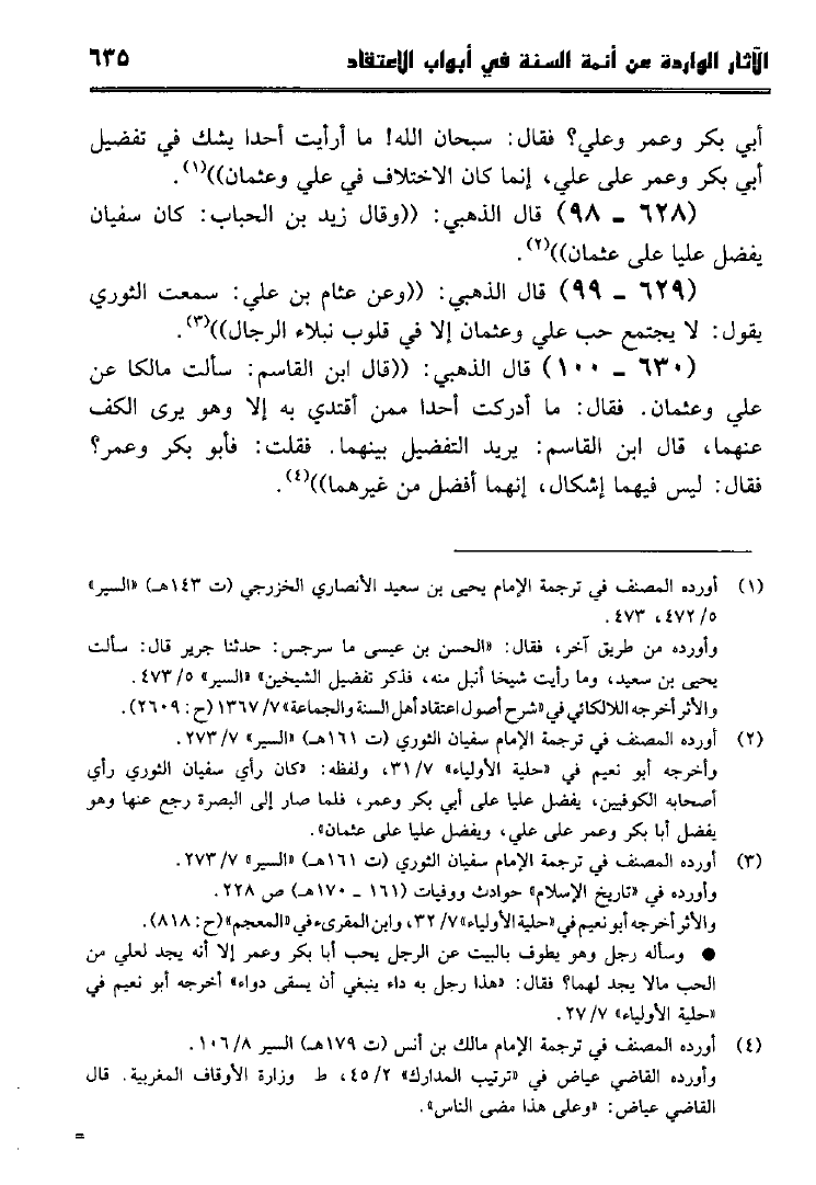 نام کتاب : الآثار الواردة عن أئمة السنة في أبواب الإعتقاد كتاب سير أعلام النبلاء للإمام الذهبي جمعاً وتخريجاً ودراسة نویسنده : جمال بن أحمد بن بشيربادي جلد : 1 صفحه : 635