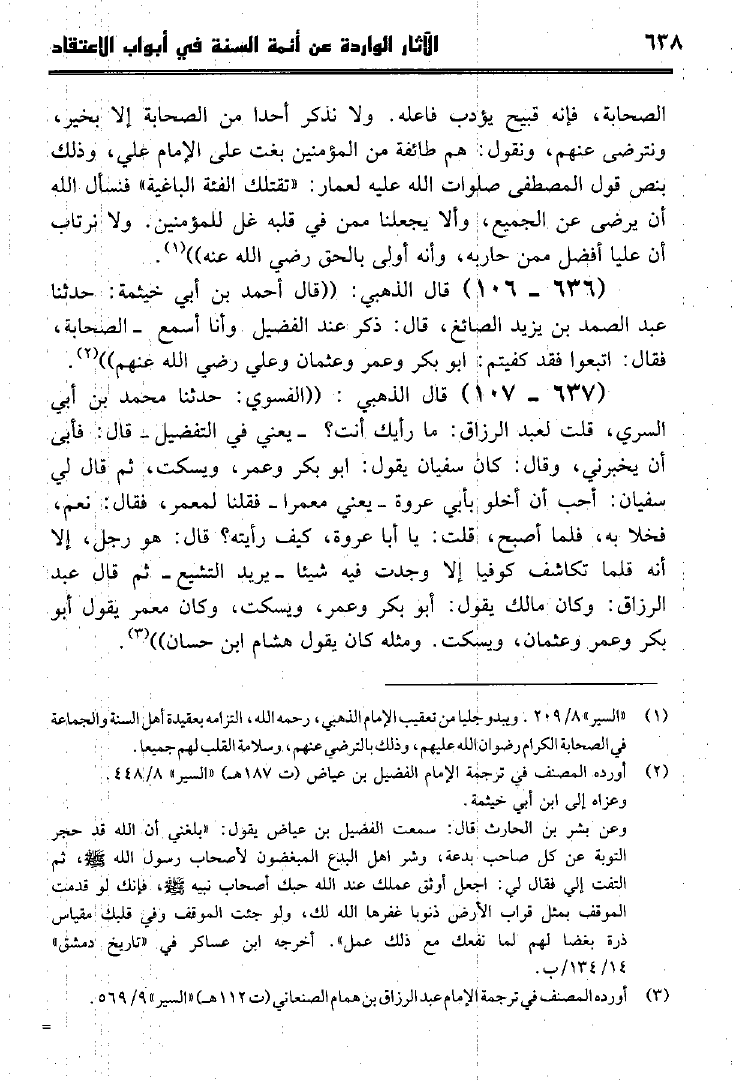 نام کتاب : الآثار الواردة عن أئمة السنة في أبواب الإعتقاد كتاب سير أعلام النبلاء للإمام الذهبي جمعاً وتخريجاً ودراسة نویسنده : جمال بن أحمد بن بشيربادي جلد : 1 صفحه : 638