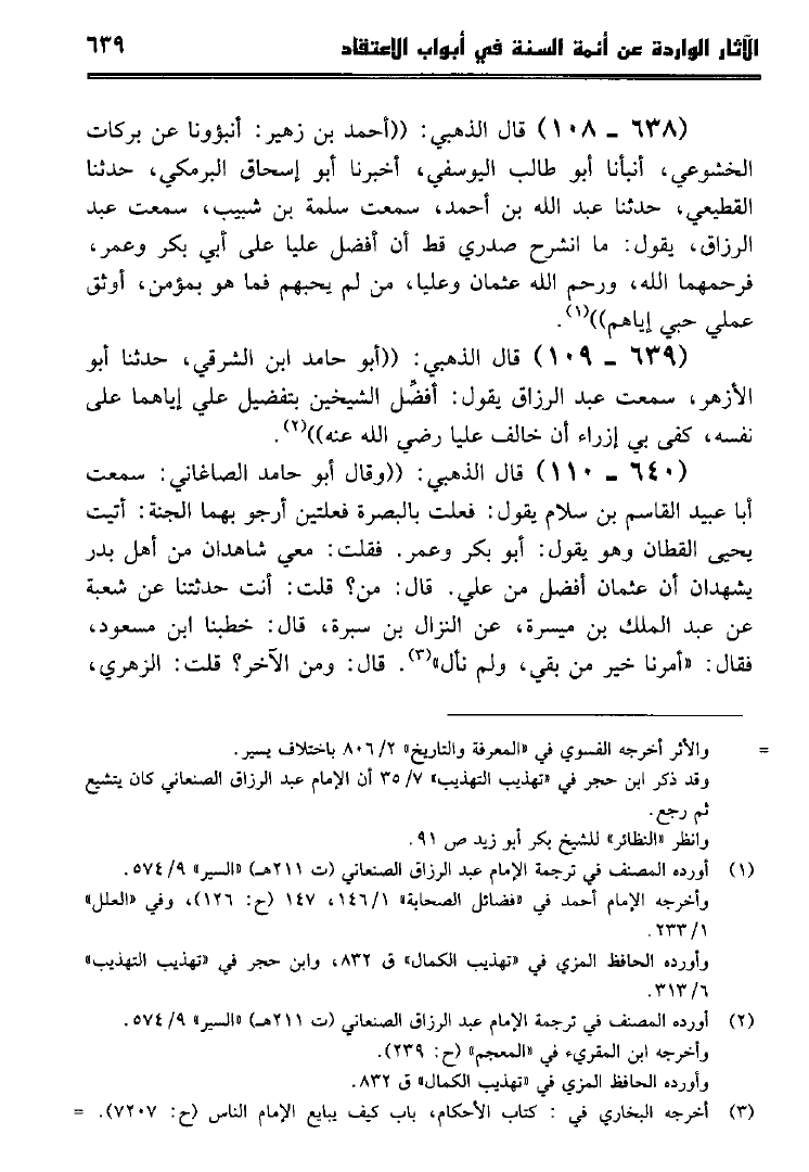 نام کتاب : الآثار الواردة عن أئمة السنة في أبواب الإعتقاد كتاب سير أعلام النبلاء للإمام الذهبي جمعاً وتخريجاً ودراسة نویسنده : جمال بن أحمد بن بشيربادي جلد : 1 صفحه : 639