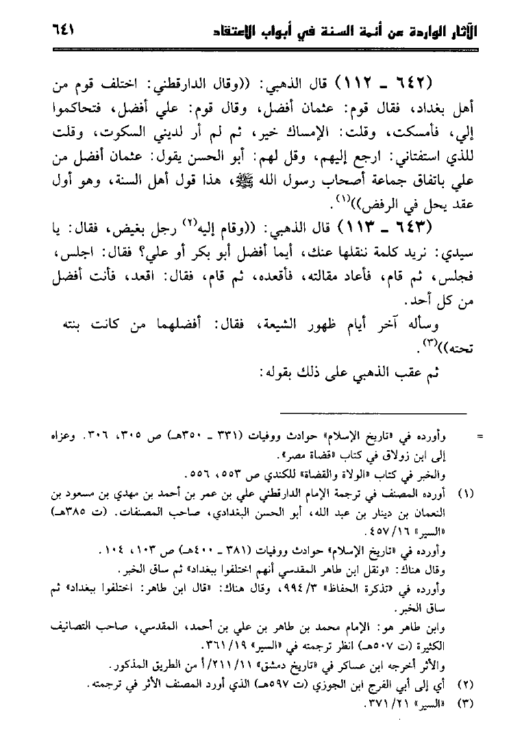 نام کتاب : الآثار الواردة عن أئمة السنة في أبواب الإعتقاد كتاب سير أعلام النبلاء للإمام الذهبي جمعاً وتخريجاً ودراسة نویسنده : جمال بن أحمد بن بشيربادي جلد : 1 صفحه : 641