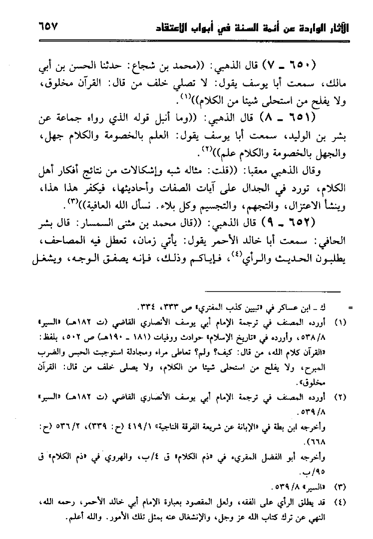 نام کتاب : الآثار الواردة عن أئمة السنة في أبواب الإعتقاد كتاب سير أعلام النبلاء للإمام الذهبي جمعاً وتخريجاً ودراسة نویسنده : جمال بن أحمد بن بشيربادي جلد : 1 صفحه : 657
