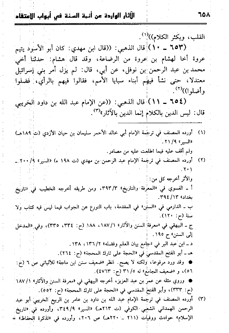 نام کتاب : الآثار الواردة عن أئمة السنة في أبواب الإعتقاد كتاب سير أعلام النبلاء للإمام الذهبي جمعاً وتخريجاً ودراسة نویسنده : جمال بن أحمد بن بشيربادي جلد : 1 صفحه : 658