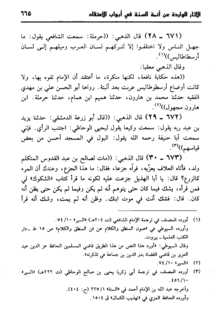 نام کتاب : الآثار الواردة عن أئمة السنة في أبواب الإعتقاد كتاب سير أعلام النبلاء للإمام الذهبي جمعاً وتخريجاً ودراسة نویسنده : جمال بن أحمد بن بشيربادي جلد : 1 صفحه : 665