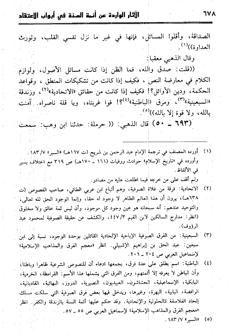 نام کتاب : الآثار الواردة عن أئمة السنة في أبواب الإعتقاد كتاب سير أعلام النبلاء للإمام الذهبي جمعاً وتخريجاً ودراسة نویسنده : جمال بن أحمد بن بشيربادي جلد : 1 صفحه : 678