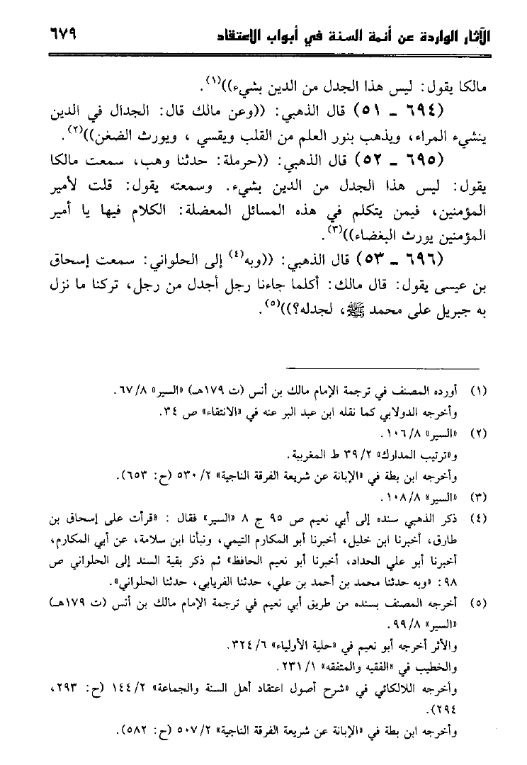 نام کتاب : الآثار الواردة عن أئمة السنة في أبواب الإعتقاد كتاب سير أعلام النبلاء للإمام الذهبي جمعاً وتخريجاً ودراسة نویسنده : جمال بن أحمد بن بشيربادي جلد : 1 صفحه : 679
