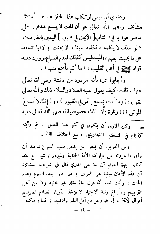نام کتاب : الآيات البينات في عدم سماع الأموات على مذهب الحنفية السادات (ت: الألباني) (ط. المكتب الإسلامي) نویسنده : نعمان محمود شكري الآلوسي جلد : 1 صفحه : 14