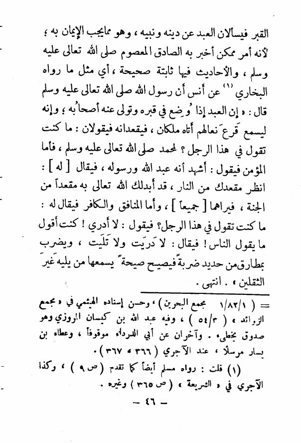 نام کتاب : الآيات البينات في عدم سماع الأموات على مذهب الحنفية السادات (ت: الألباني) (ط. المكتب الإسلامي) نویسنده : نعمان محمود شكري الآلوسي جلد : 1 صفحه : 46