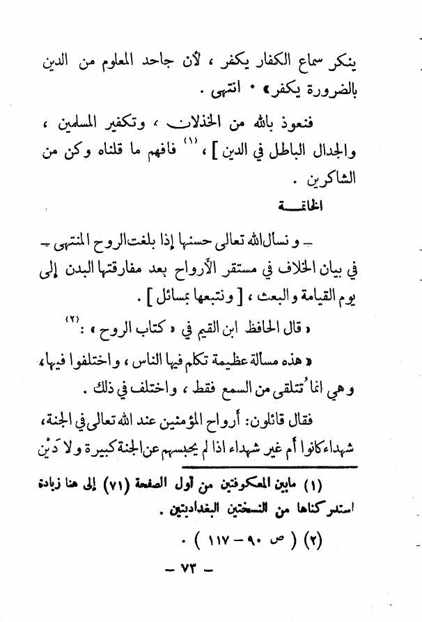 نام کتاب : الآيات البينات في عدم سماع الأموات على مذهب الحنفية السادات (ت: الألباني) (ط. المكتب الإسلامي) نویسنده : نعمان محمود شكري الآلوسي جلد : 1 صفحه : 73