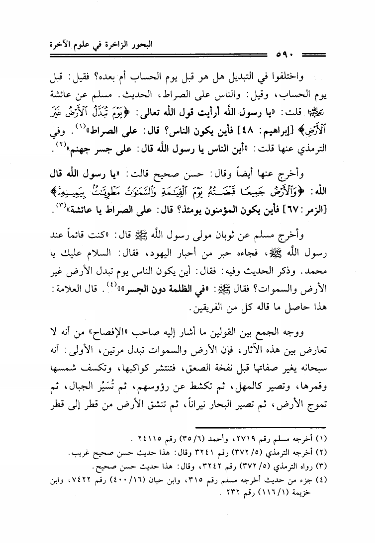 البحور الزاخرة في علوم الآخرة