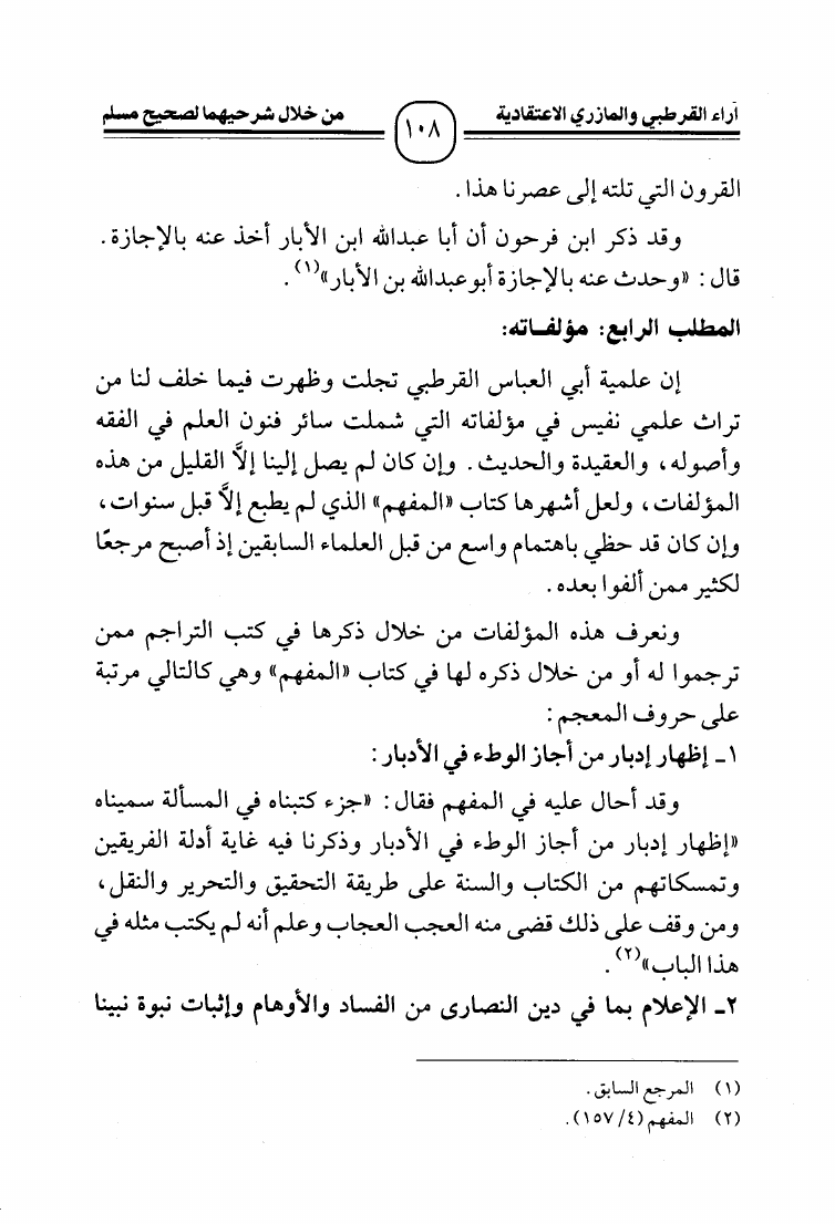 آراء القرطبي والمازري الإعتقادية من خلال شرحهما لصحيح مسلم - دراسة وترجيح