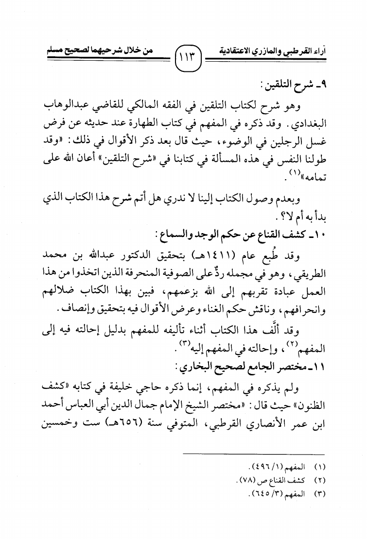 آراء القرطبي والمازري الإعتقادية من خلال شرحهما لصحيح مسلم - دراسة وترجيح