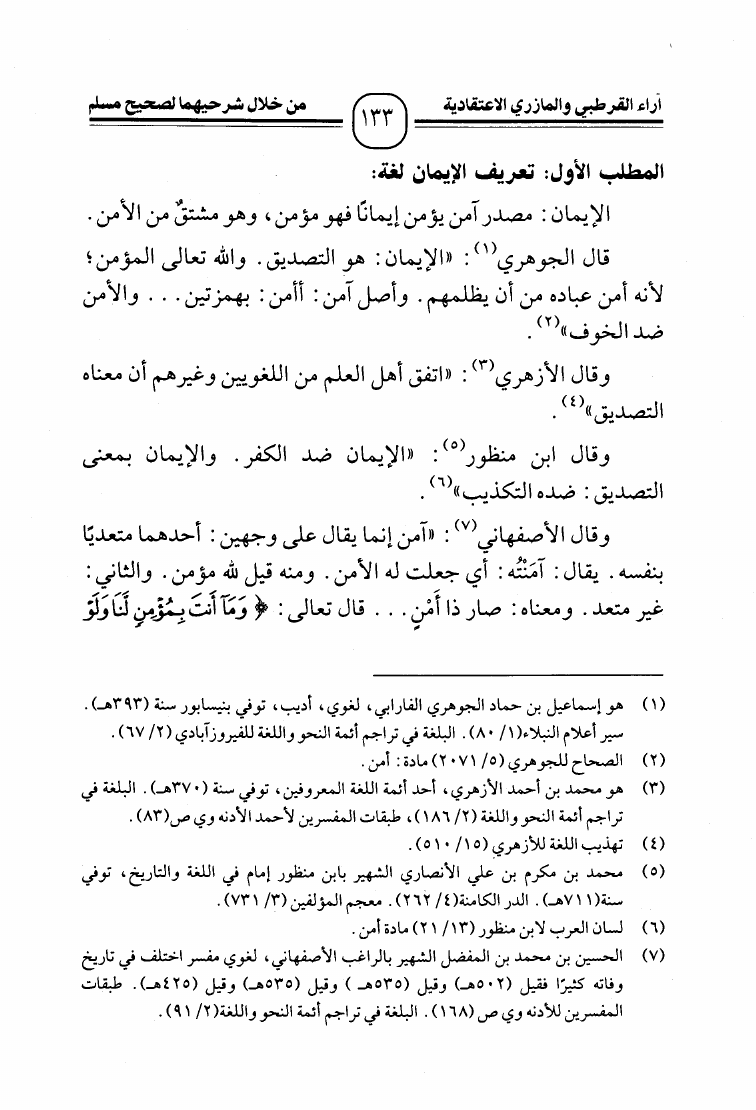 آراء القرطبي والمازري الإعتقادية من خلال شرحهما لصحيح مسلم - دراسة وترجيح
