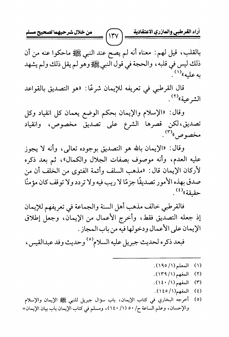 آراء القرطبي والمازري الإعتقادية من خلال شرحهما لصحيح مسلم - دراسة وترجيح