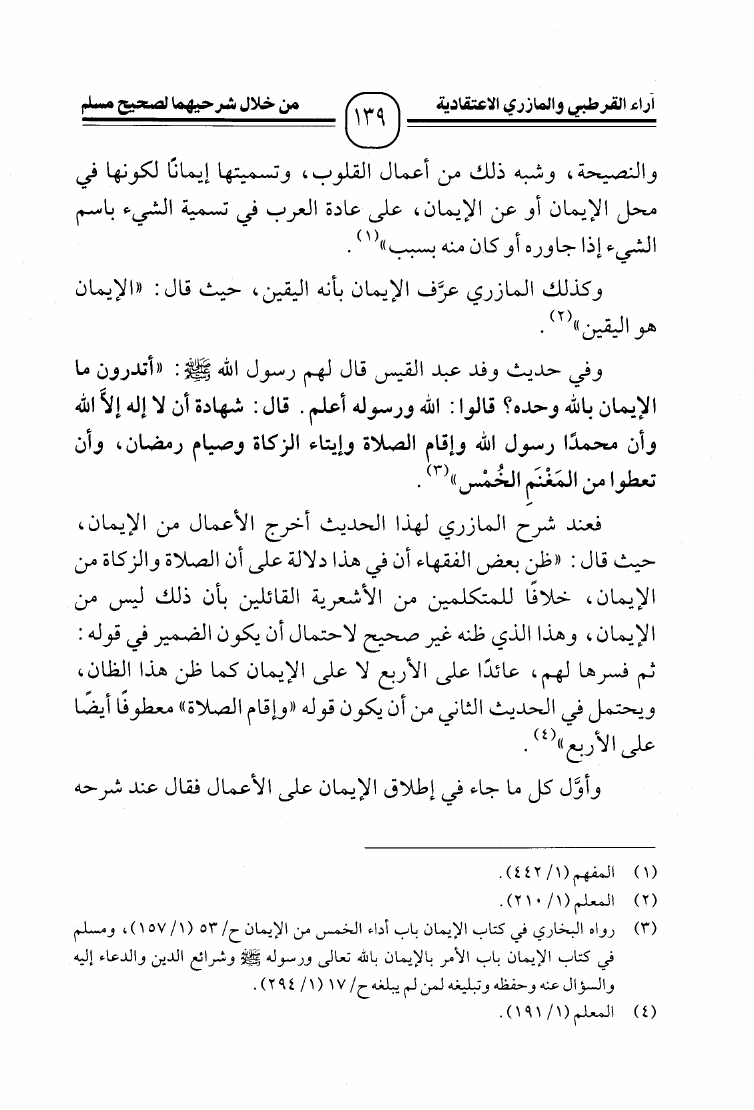 آراء القرطبي والمازري الإعتقادية من خلال شرحهما لصحيح مسلم - دراسة وترجيح