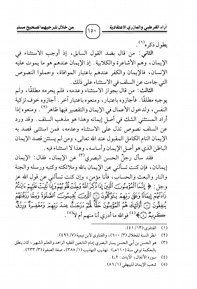 آراء القرطبي والمازري الإعتقادية من خلال شرحهما لصحيح مسلم - دراسة وترجيح
