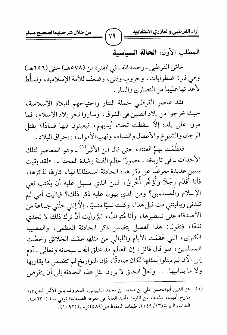 آراء القرطبي والمازري الإعتقادية من خلال شرحهما لصحيح مسلم - دراسة وترجيح