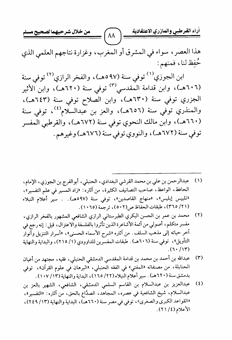 آراء القرطبي والمازري الإعتقادية من خلال شرحهما لصحيح مسلم - دراسة وترجيح