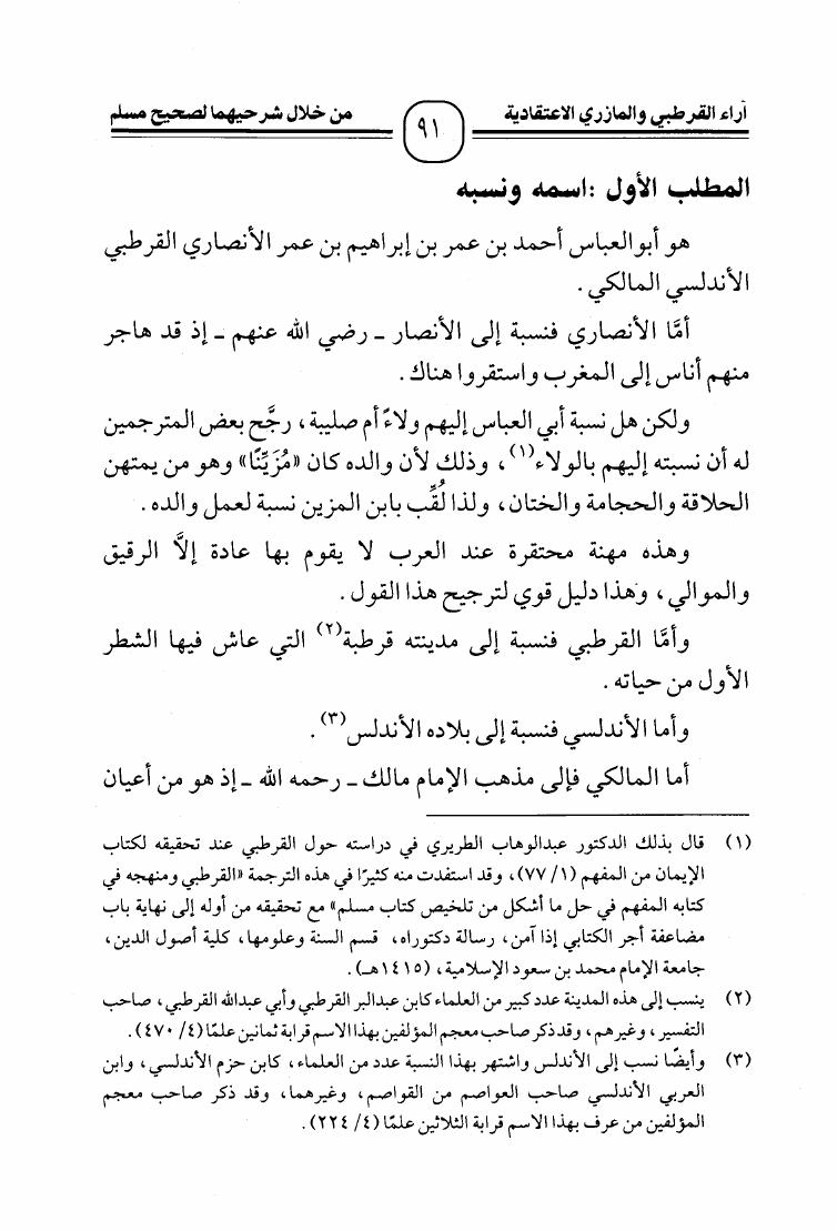 آراء القرطبي والمازري الإعتقادية من خلال شرحهما لصحيح مسلم - دراسة وترجيح