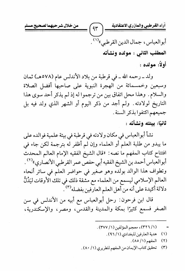 آراء القرطبي والمازري الإعتقادية من خلال شرحهما لصحيح مسلم - دراسة وترجيح