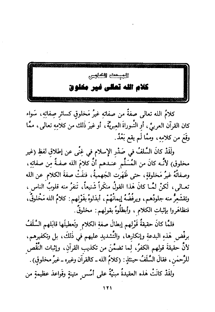 العقيدة السلفية فى كلام رب البرية وكشف أباطيل المبتدعة الردية