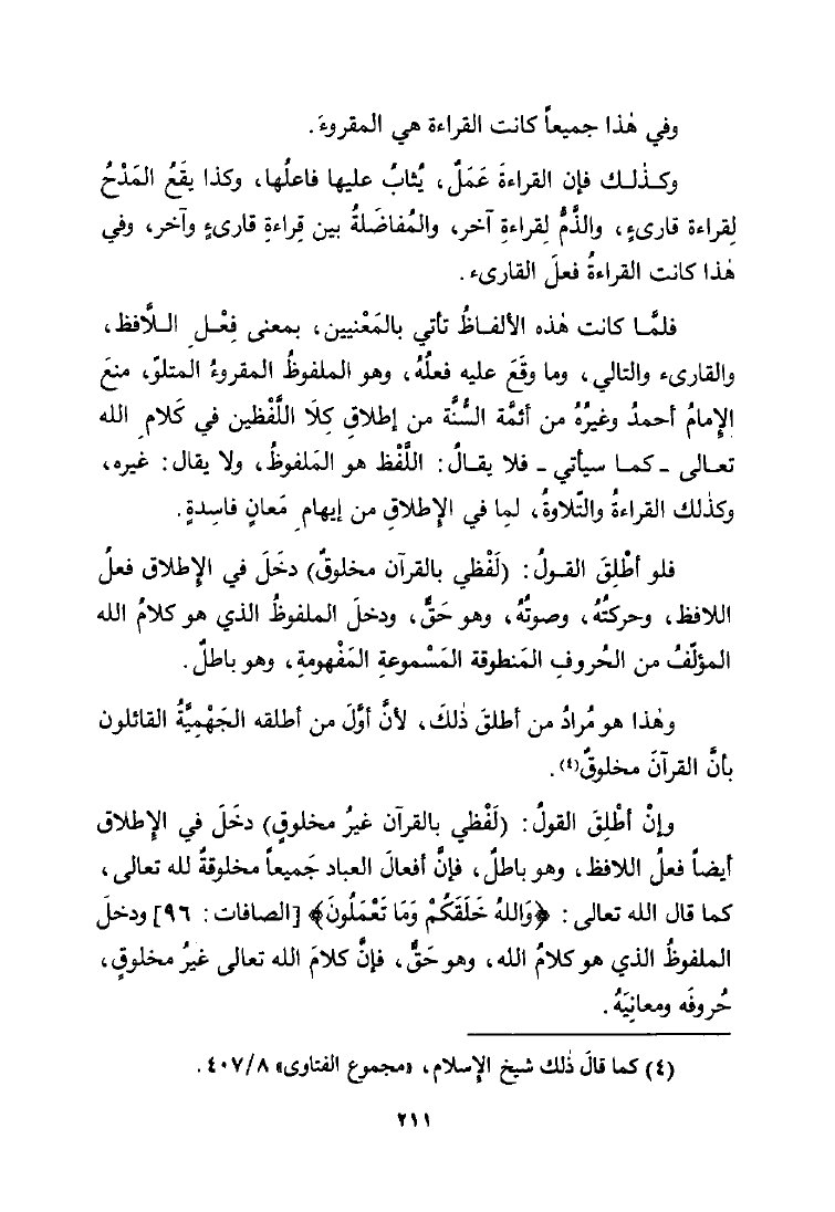 العقيدة السلفية فى كلام رب البرية وكشف أباطيل المبتدعة الردية