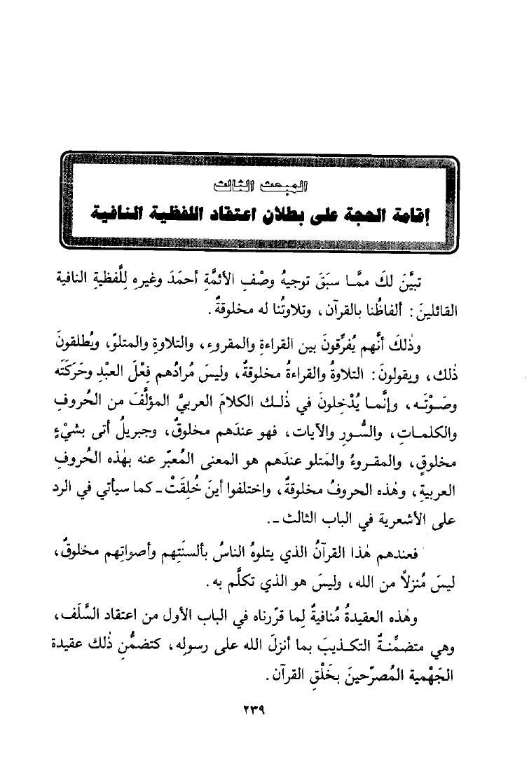 العقيدة السلفية فى كلام رب البرية وكشف أباطيل المبتدعة الردية