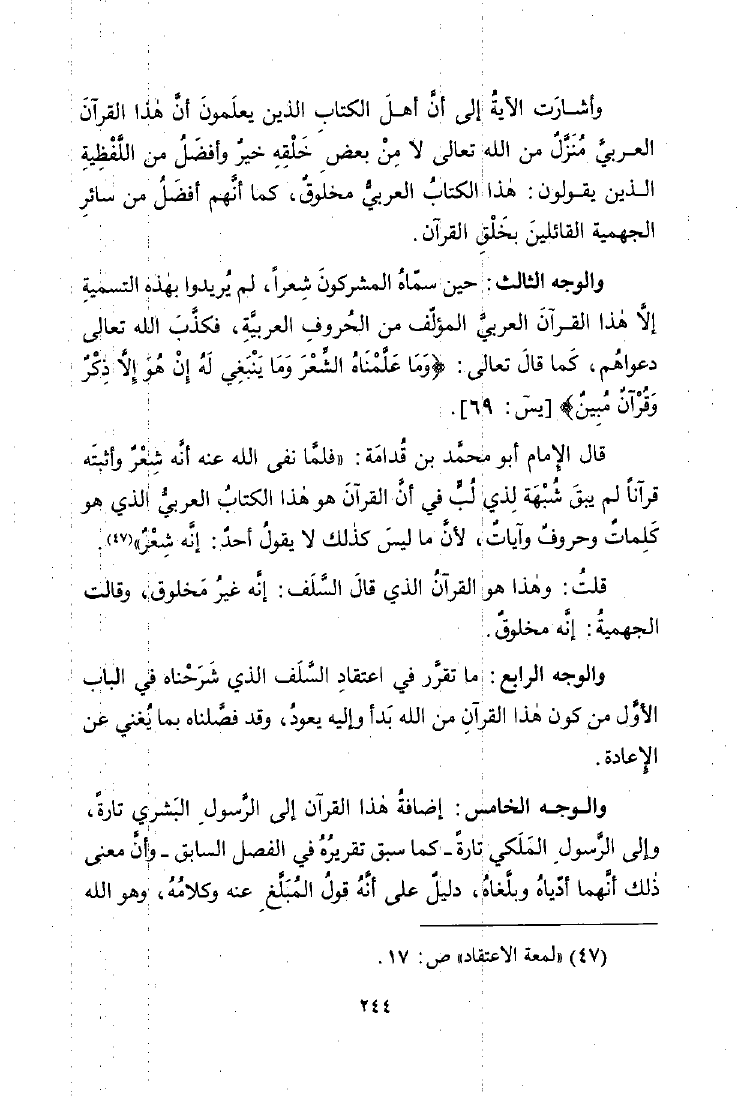 العقيدة السلفية فى كلام رب البرية وكشف أباطيل المبتدعة الردية