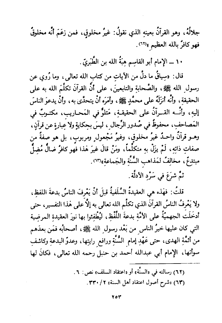 العقيدة السلفية فى كلام رب البرية وكشف أباطيل المبتدعة الردية