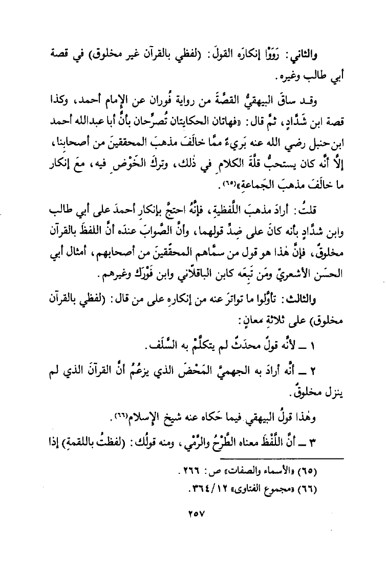 العقيدة السلفية فى كلام رب البرية وكشف أباطيل المبتدعة الردية