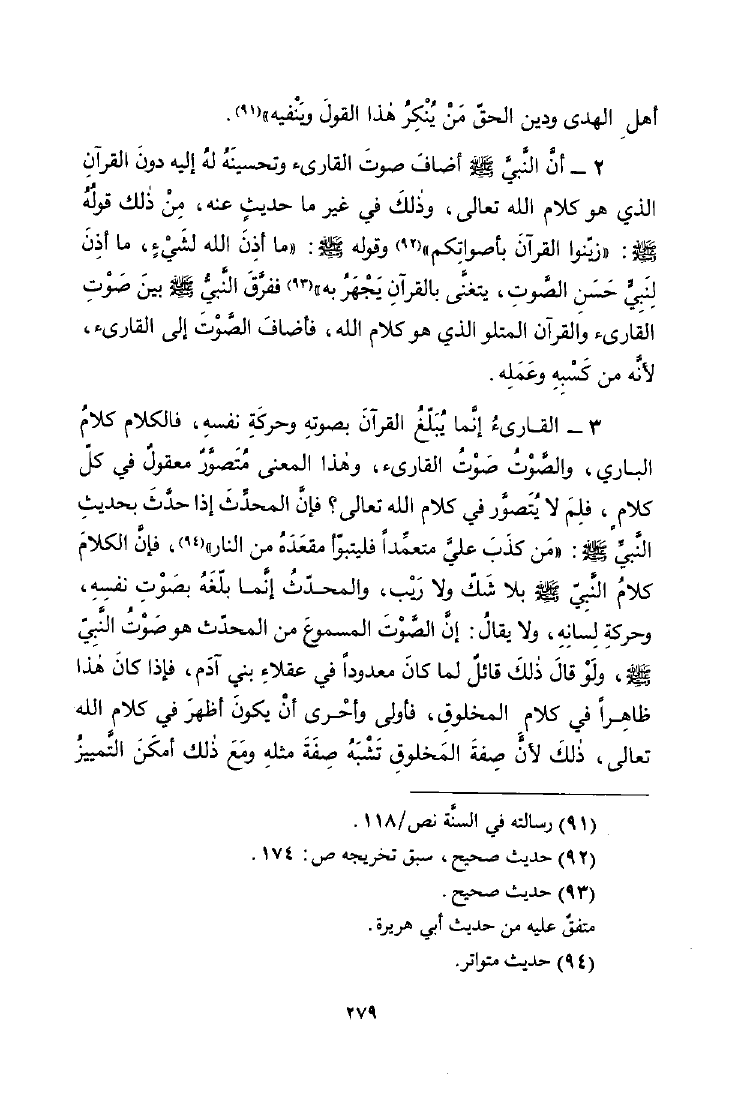 العقيدة السلفية فى كلام رب البرية وكشف أباطيل المبتدعة الردية