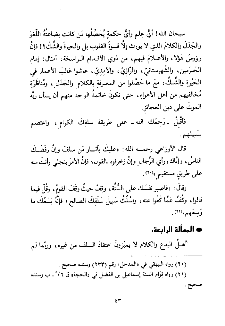 العقيدة السلفية فى كلام رب البرية وكشف أباطيل المبتدعة الردية