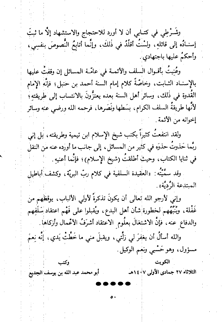 العقيدة السلفية فى كلام رب البرية وكشف أباطيل المبتدعة الردية