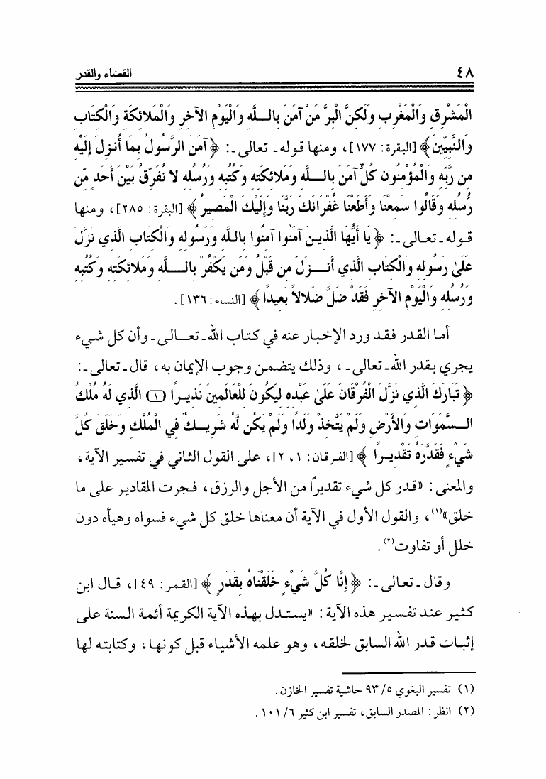 القضاء والقدر في ضوء الكتاب والسنة ومذاهب الناس فيه