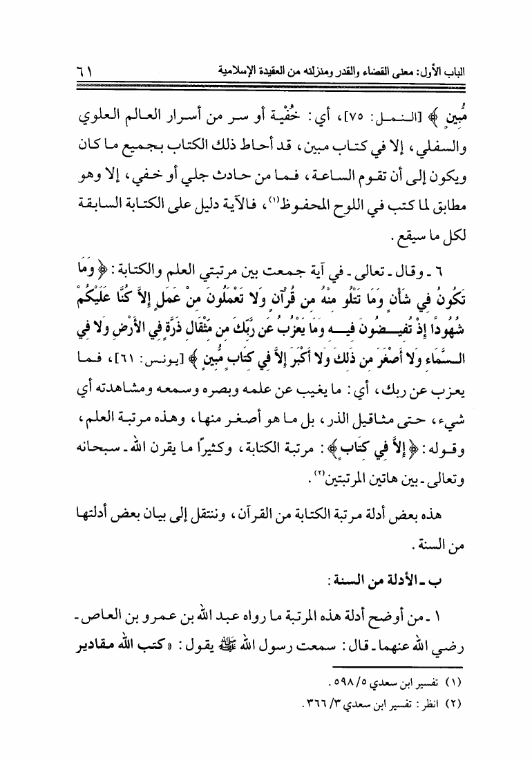 القضاء والقدر في ضوء الكتاب والسنة ومذاهب الناس فيه