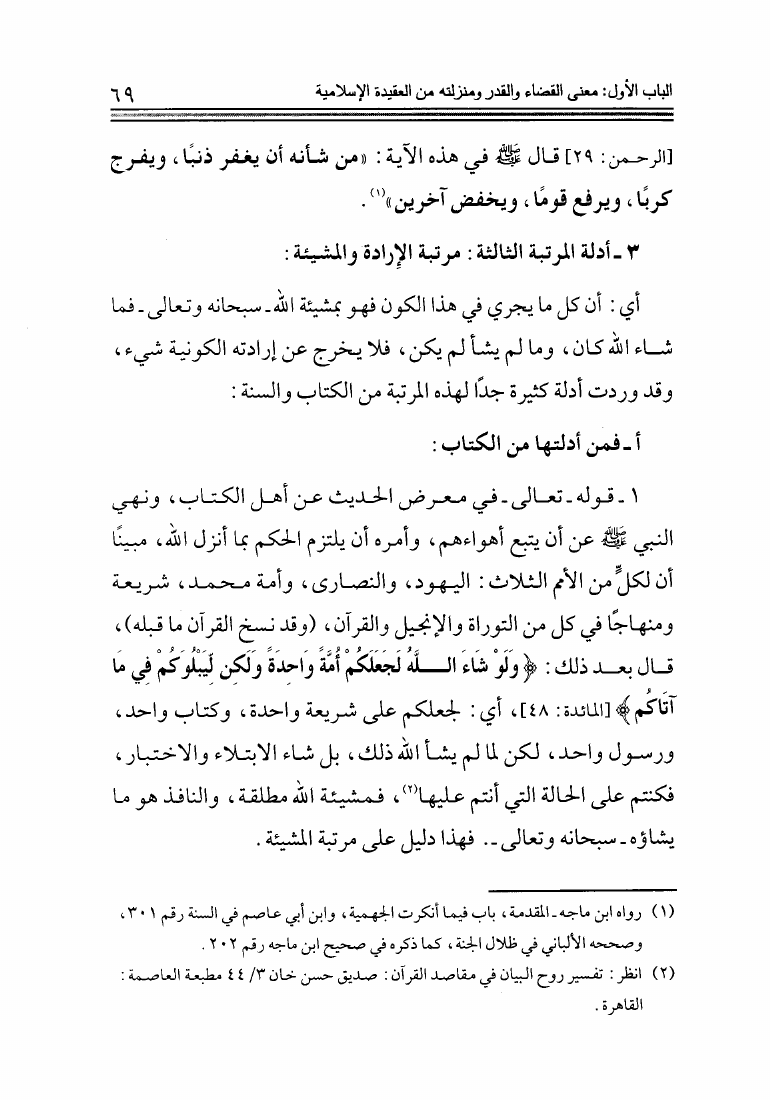 القضاء والقدر في ضوء الكتاب والسنة ومذاهب الناس فيه