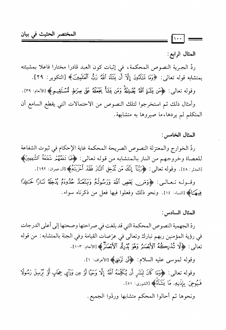 نام کتاب : المختصر الحثيث في بيان أصول منهج السلف أصحاب الحديث في تلقي الدين وفهمه والعمل به والدعوة إليه نویسنده : عيسى مال الله فرج جلد : 1 صفحه : 100