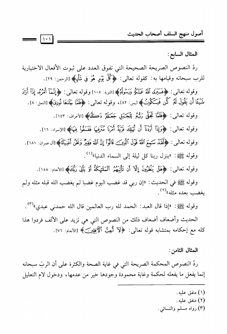 نام کتاب : المختصر الحثيث في بيان أصول منهج السلف أصحاب الحديث في تلقي الدين وفهمه والعمل به والدعوة إليه نویسنده : عيسى مال الله فرج جلد : 1 صفحه : 101