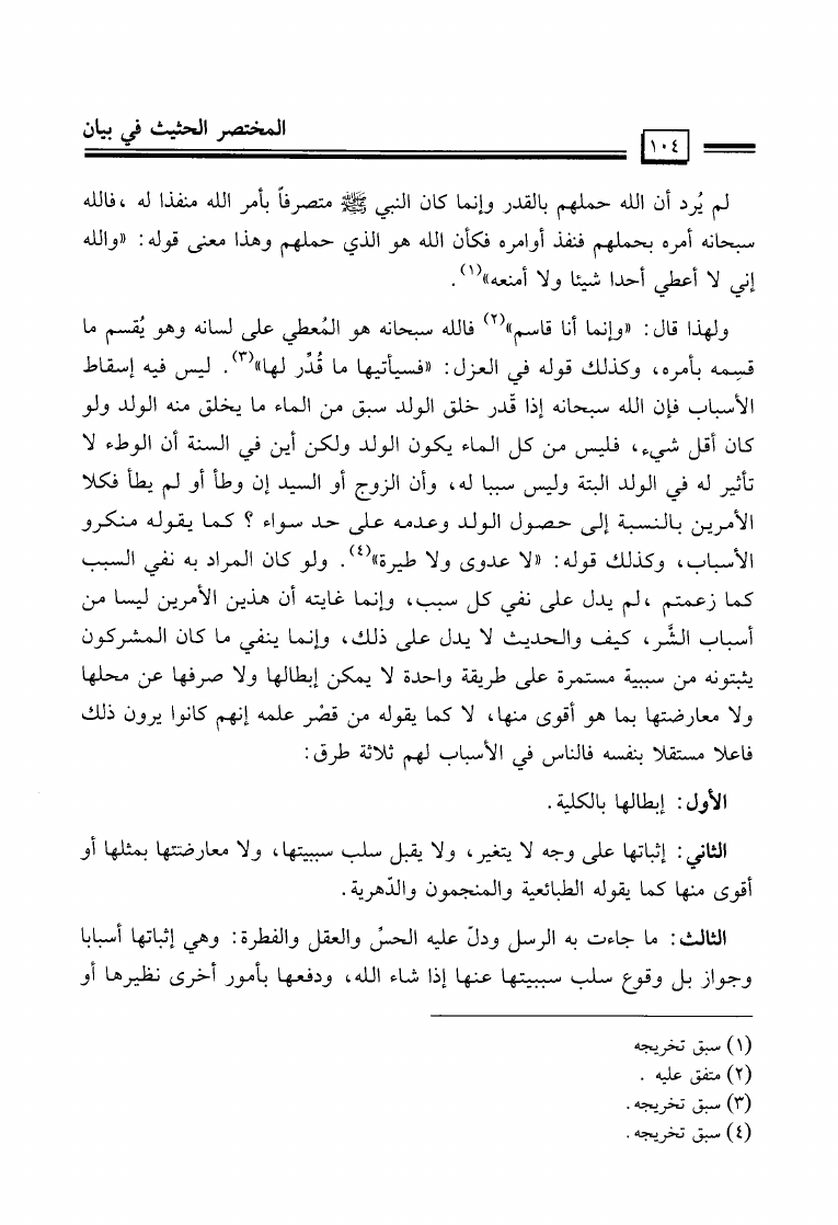نام کتاب : المختصر الحثيث في بيان أصول منهج السلف أصحاب الحديث في تلقي الدين وفهمه والعمل به والدعوة إليه نویسنده : عيسى مال الله فرج جلد : 1 صفحه : 104